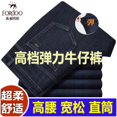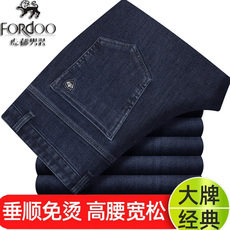 高档牛仔男裤冬季厚款弹力高腰宽松直筒商务免烫中年休闲男裤