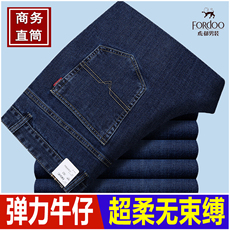 弹力超柔牛仔裤男中年秋冬厚款宽松直筒牛仔男裤商务休闲裤子