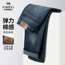 高端男士牛仔裤中年秋冬厚款宽松直筒男裤商务休闲弹力牛仔裤