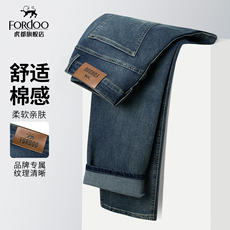 冬季款男士牛仔裤男休闲直筒高腰宽松高端商务