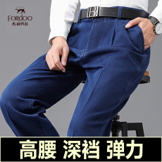 男裤秋冬厚款中年爸爸牛仔商务休闲直筒宽松高腰免烫弹力长裤