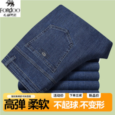 高档男裤冬季厚款中年牛仔商务休闲直筒宽松高腰免烫弹力男裤