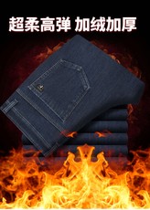 牛仔裤加绒加厚弹力商务男裤青中年男士直筒宽松休闲长裤