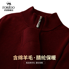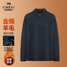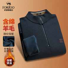 老钱风半拉链毛衣男士冬季加绒长袖半高领针织衫