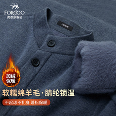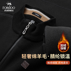 立领开衫毛衣男冬季加绒上衣针织衫爸爸装外套